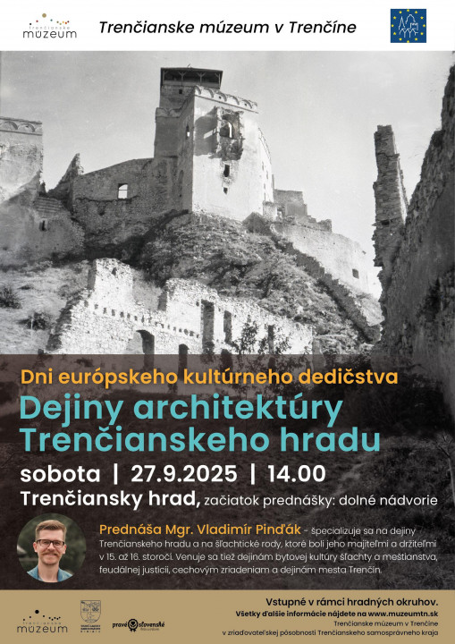 Stručná charakteristika: | Komentovaná prehliadka architektúry Trenčianskeho hradu s historikom Mgr. Vladimírom Pinďákom, historikom Trenčianskeho múzea v Trenčíne. | ||||||