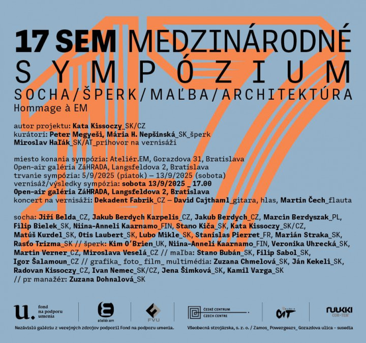 Výsledky sympózia 17SEM budú prezentované počas vernisáže v Open-air galérii ZáHRADA v sobotu 13.9.2025 (sobota), trvanie vernisáže 17.00 – 21.00.
